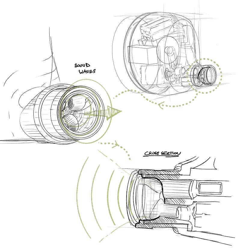 The aluminum housing serves as both structural foundation and acoustic environment. Within this precisely machined shell, advanced 3D printed components create an intricate network of acoustic pathways, each optimized for its specific purpose in the complete system.