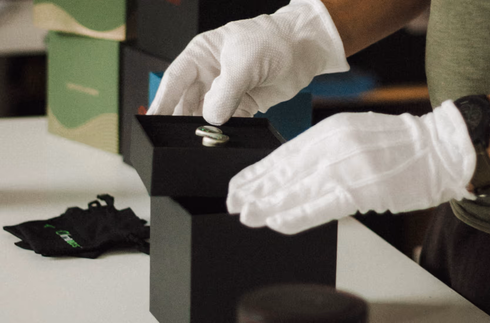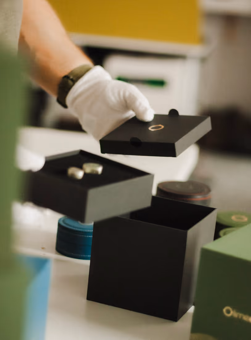 Each Terra shell begins as a solid block of aerospace-grade aluminum. Our five-axis CNC machines craft it with incredible precision, creating flawlessly polished surfaces. Then, human touch takes over. Our artisans handcraft signature face plates where lab-grown opal meets perfectly positioned logos under crystal-clear resin.